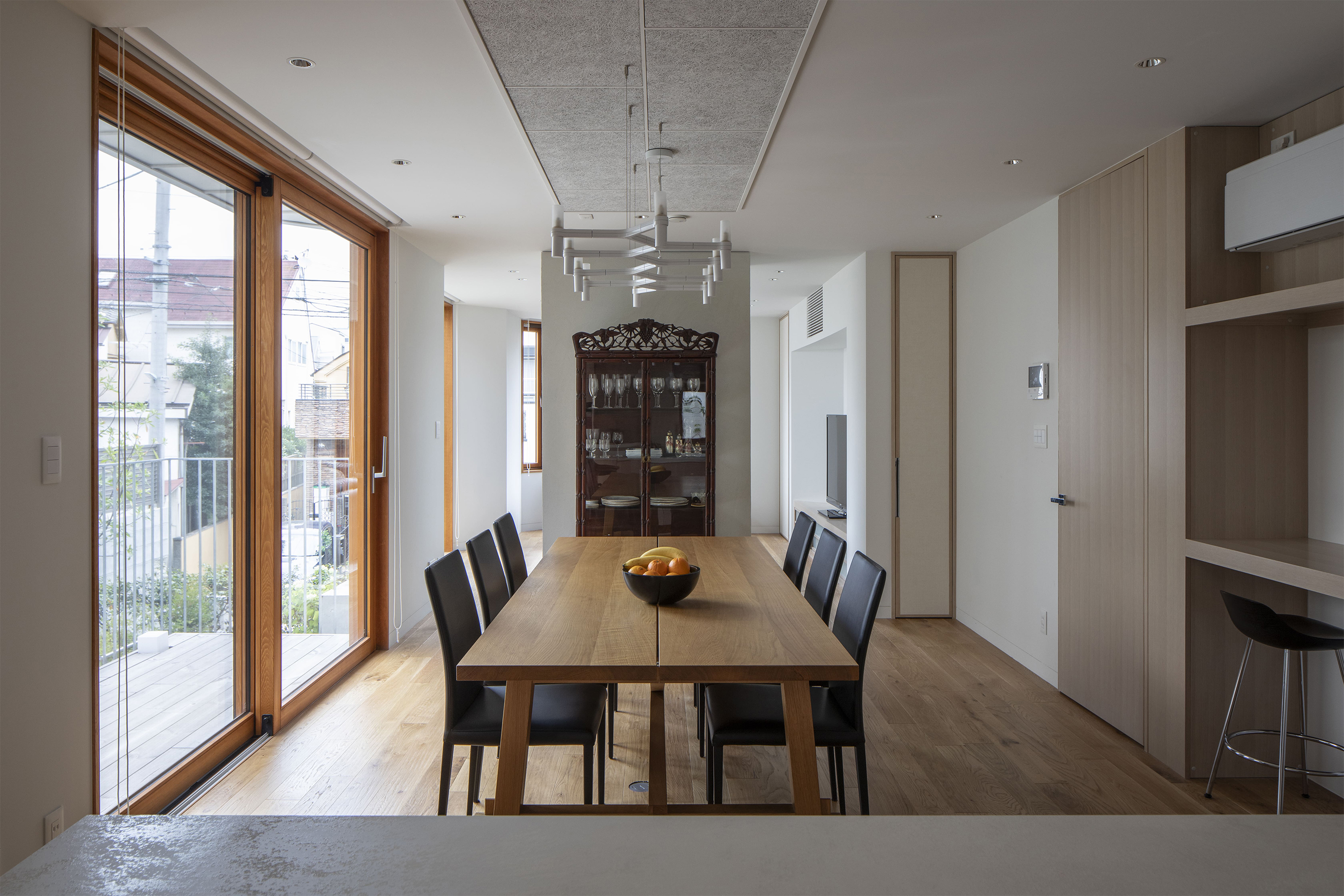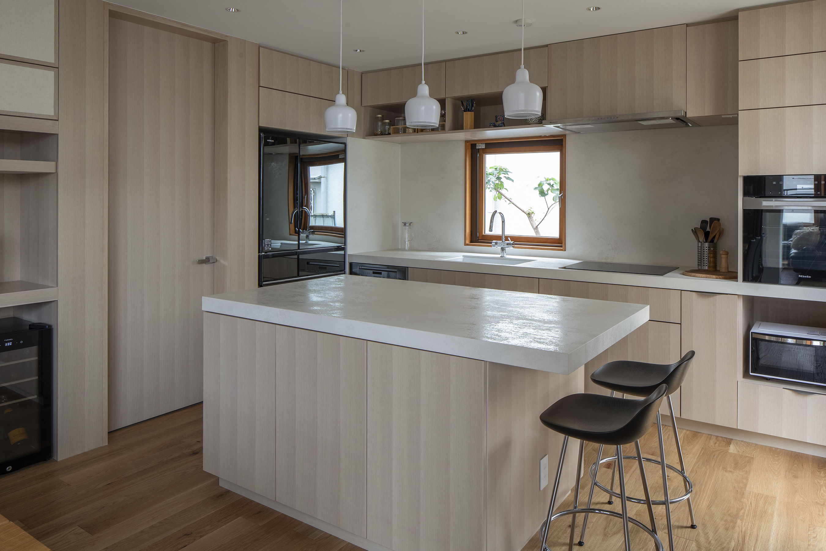 また、障子を通した柔らかな自然光や、庭に配した飛び石といった和の要素を取り入れることで、日本の美意識と調和する和洋折衷のデザインを目指した。
